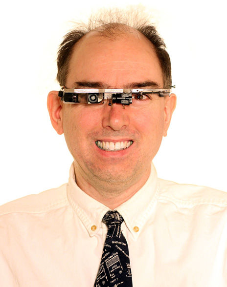史蒂夫·曼恩,1962年出生,今年50多了。早年求學于MIT,理學學士,工學碩士,1997年拿到了媒體藝術博士學位,F(xiàn)在在多倫多大學當教授,在電器與計算機工程系,藝術與科學系各種跨界地牛掰閃亮著。 別看他這么逗樂,實在人家被業(yè)界尊為“可穿著技術之父”。上個世紀(1999年)就開始帶著圖中的EyeTap眼鏡四處拉風。2012年吃麥當勞時,還由于帶著這樣酷炫的裝備被人打過,在當時引起了全球范圍的對于谷歌眼鏡類型硬件的大討論。 他在動圖里曬的就是自己發(fā)明的三大神器:EyeTap眼鏡,智能腕表,和SWIM連續(xù)波形打印的AR技術。 曼恩主要的科技成就集中在計算機攝影技術方面:1993年,曼恩就第一次提出了“視頻軌道”算法;還發(fā)明過使用高壓液壓流體發(fā)生的樂器(好比,你可以表演彈個“水”); 上世紀八九十年代,曼恩開發(fā)了CLI(命令行界面)和GUI(圖形用戶界面),均屬于通過與現(xiàn)實世界的天然動作進行交互的方法。后來還開發(fā)了HCI基于聲樂的人機交互技術。 其總體的開發(fā)思路也是很光鮮,瞄準人類的各種天然行為研發(fā)交互技術,并且越做越精細。 假如說這是一個“搶大神,變身獨角獸”的時代,那么上圖左側(cè)笑地低調(diào)的Steve Feiner也被Meta集齊了。 史蒂夫·費納是哥大計算機系的教授,2014年獲得了IEEE VGTC電氣電子工程師學會可視化和圖形技術委員會會議評比的虛擬現(xiàn)實終身成就獎。 1996年他利用可穿透的顯示屏創(chuàng)建第一個戶外可移動增強現(xiàn)實系統(tǒng)。其設計的The Private Eye頭部佩戴顯示器利用一個可擺動的鏡子,掃描虛擬場景里垂直的LED陣列。探測屏幕對角線長度為1.25英寸,不外圖像會顯示在18英寸間隔遠的15英寸屏幕上。