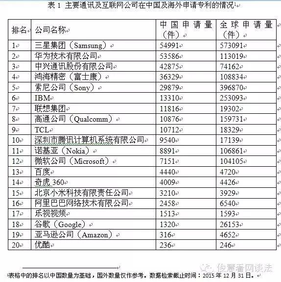 寫在前面: 專利,既是衡量一家企業(yè)立異投入的指標,也是判定企業(yè)科研成果的標尺。 作為海內互聯網領域的三大巨頭,百度、騰訊、阿里巴巴,即俗稱的“BAT”,歷來是備注關注的焦點。 那么,站在專利布局和保護領域來看,它們各自的專利意識如何?專利布局又有特點? 日前,由北京大學互聯網法律中央研究撰寫的《互聯網技術立異專利觀察講演(2015)》(以下簡稱《講演》)正式對外發(fā)布。 《講演》顯示 ,截止2015年12月31日,在挑選的20家分析對象中,三星、華為、復興、富士康、索尼、IBM、聯想、高通、TCL等企業(yè)在海內的專利申請數目均在1萬件以上,其中,中國企業(yè)占5/9。 而海內互聯網企業(yè)中,僅騰訊(9540件)一家接近1萬件,暫時領先于百度(4440件)、阿里巴巴(2458件)、360(4009件)等公司。 那么,就百度、騰訊、阿里巴巴等俗稱的“BAT”而言,三家公司的專利保護和布局,哪家更強?又各有什么特點? 專利規(guī)模:BAT中騰訊一馬當先