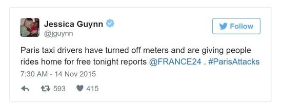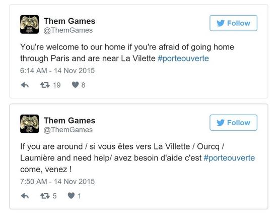 你可能已經(jīng)在各大新聞客戶端上看到了,就在幾個(gè)小時(shí)前,法國的首都巴黎發(fā)生了慘無人性的槍擊和爆炸事件?偣灿谐^100人喪生。未經(jīng)確認(rèn)的動(dòng)靜顯示,襲擊者來自 ISIS,先后傳來的動(dòng)靜顯示一共有兩名襲擊者,第一名已經(jīng)被俘。 巴黎很快進(jìn)入了宵禁狀態(tài)。巴黎部門地鐵等公共交通線路被封閉或陷入癱瘓,導(dǎo)致觀看了法國和德國足球情誼賽的觀眾,以及其他大量巴黎市民無法回家。 間隔球賽現(xiàn)場(chǎng)較近的人們選擇了到體育館避難,而仍在街上的人們無處可投。巴黎市民在Twitter上啟用了#PortOuverte話題——這句法語的意思是“開著的門”。 通過在推文中使用這個(gè) hashtag,能夠提供飲用水、餐食、沙發(fā)、臥室等一切避難前提的巴黎市民,將自己的房屋信息公之于眾。無家可歸的人們可以通過這個(gè)hashtag來找到離自己最近的避難所。 ![]() ![]() 部門的士司機(jī)也封閉了咪表,匡助被事件以及后來的宵禁困在路上的人們盡快返家。