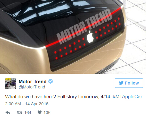 目前有4種推測: 1.蘋果公司有可能在近一年的時間內(nèi)設(shè)計出來智能汽車的外觀,Motor Trend雜志是咨詢加州帕薩迪納ArtCenter的設(shè)計師,由于蘋果公司也在這一區(qū)域,并且也是ArtCenter學(xué)院的客戶,所以有人推測這些概念圖有可能接近Apple Car的設(shè)計理念。 2.特斯拉的Model 3提前一年半發(fā)布和預(yù)售,量產(chǎn)并投遞預(yù)售用戶手中需要2-3年的時間,蘋果公司也可能采取類似的模式,這樣就需要在一年內(nèi)也要有Apple Car初步的設(shè)計宣布出來,搶奪所剩無幾的智能電動車用戶,所以很大概率蘋果公司會出頭具名回應(yīng)。不外蘋果公司一直是吊著用戶預(yù)期的高手,也可能會再配合媒體炒作幾輪再宣布Apple Car的真面目。 3.間隔蘋果公司發(fā)布新一季的財報又不遠(yuǎn)了,不同于圣誕假期的銷售旺季,蘋果公司本來就在財報預(yù)期2016第二財季iPhone的銷售會泛起多年來的第一次下滑,蘋果公司會面對華爾街的又一次看空,所以需要用Project Titan出來維持市場對于蘋果未來盈利能力的預(yù)期。 4.這些概念圖是Motor Trend雜志憑空的設(shè)想,就是為了宣傳雜志,吸引更多訂戶。
