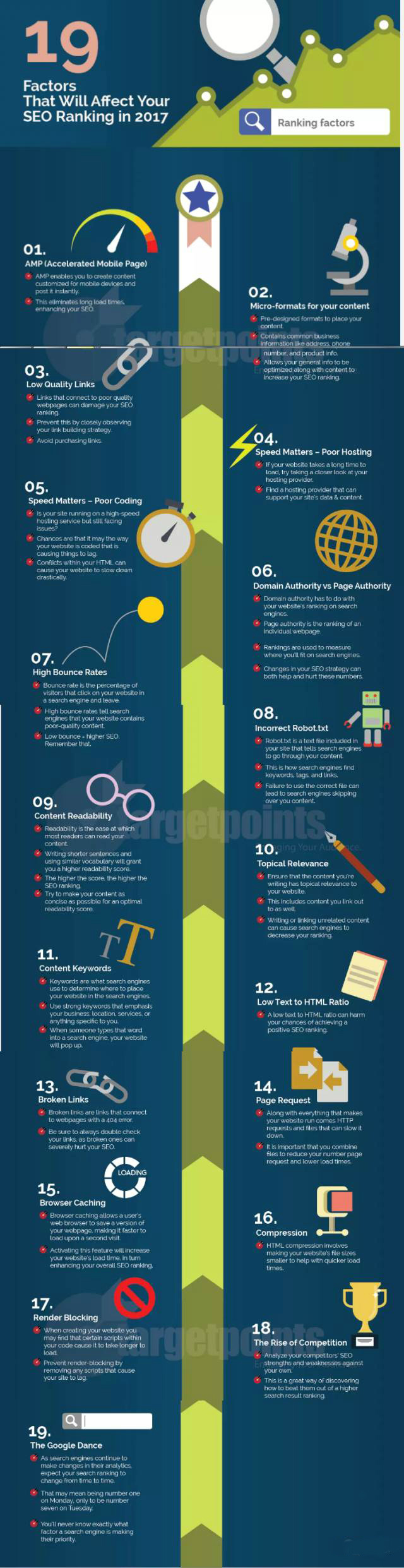 為了使企業(yè)保持在搜索結果中的最高點或有提高的空間,以下的這些趨勢和戰(zhàn)術是值得鑒戒的。 當我們進入新的一年,不要讓自己由于過期的規(guī)則而落后。今天的文章我給大家先容國外大神猜測的2017年SEO的最新趨勢,這些新的變化會不會讓你伎癢呢? 趨勢一、移動設備很重要 一些小到適合裝在你的口袋里的小東西卻可以對搜索引擎優(yōu)化的最大的影響,是不是很戲劇?無論你喜歡與否,移動設備變得更受歡迎。有的商家的網站過去可能不兼容的移動設備,現在來說這將有災害性的影響,你的搜索引擎優(yōu)化向前移動。人們使用他們的智能手機來檢查他們的電子郵件,網上購物,更重要的是搜索信息。正由于這種變化,谷歌和雅虎這樣的搜索引擎已經改變了他們的算法,以適應更多的移動網站。對應移動設備的網站設計是自動進步搜索排名的樞紐,假如你的企業(yè)尚未做出這一步,那么從2017年開始,一定要考慮到移動設備的兼容性。 網站優(yōu)化必需兼容移動設備的原因 1,移動用戶想要的是快速和易于導航的信息 2,全球數億的移動端用戶 3,更好的品牌介入 4,進步轉換率 5,降低跳出率 趨勢二、AMP的重要性 移動設備真?zhèn)SEO,不容設備的兼容性導致信息不能同步。固然大多數智能手機有4G或LTE確保快速加載,但其他移動設備卻可能延遲你的網頁展示,影響SEO排名。幸運的是AMP (Accelerated Mobile Page)可以補救這個題目。AMP答應你為移動設備優(yōu)化HTML,大大地進步展示速度,有助于消除手機或平板設備的等待時間。 必需使用谷歌的加速移動頁面框架的原因 1,AMP HTML 和JavaScript不答應第三方插件 2,更快的加載速度 3,改善無障礙網頁 4,谷歌統(tǒng)治搜索世界及其方向 5,CDN(內容分發(fā))來進步速度和可訪問性 6,專為增加用戶體驗設計的框架 趨勢三、打開速度題目 大家都聽過這樣的說法:忍耐是一種美德。但是當涉及到網站的速度時,這句話就不湊效了,沒有人會等待10秒或一分鐘等待一個頁面的加載。跟著技術的不斷發(fā)展,用戶只期望打開網站的等待時間減少。SEO同樣考慮這一點,服務器速度高的網站排名高于那些反應慢的網站。進入2017,在設計網站的時候應考慮影響網站打開速度的因素,這包括動畫、視頻和豐碩的媒體廣告。把更多的錢投入到影響你的網站運行的速度服務器上,不要讓緩慢的加載時間損壞你網站的展示。你的網站加載的速度越快,用戶就越有可能訪問。 移動桌面和移動真?zhèn)同時優(yōu)化 1,減少服務器響應時間 2,減少頁面大小 3,降低總的圖像內容 4,使用GZIP壓縮 5,縮小你的JavaScript和CSS樣式表 趨勢四、樞紐詞的優(yōu)化 樞紐詞在長時間內被以為是搜索引擎優(yōu)化的支柱。有用的樞紐詞對SEO有增強作用,營銷專家開始把樞紐詞作為進步案牘質量的重點。到2017,案牘質量已成為成功優(yōu)化的樞紐。不僅是搜索引擎增加了別人分享或鏈接你的內容的機會,也進步了排名。沒有人想閱讀一個重復的內容,而是一個天然,豐碩的案牘。作者不是建議大家去除所有重復的樞紐字,但必需有機地結合在你所創(chuàng)建的內容。讀者喜歡閱讀的內容是豐碩的,更是貼心他們糊口和內心的案牘。 另一個巧妙的做法是預先設計的格局已經包含常見的業(yè)務信息,如地址,電話號碼和產品信息。高質量的案牘和設計是吸引你的觀眾的最好的方法,同時也匡助你進步排名。 為什么案牘質量會影響SEO 1,谷歌將忽略過度優(yōu)化的內容 2,讀者想要找到信息,而不是你的內容樞紐字 3,谷歌但愿看到質量,相關性和獨一性 趨勢五、本地搜索 SEO優(yōu)化和房地產有一個共同點,就是位置的重要性。這是一個很大的世界,假如你是一個小到中等規(guī)模的企業(yè),它可能會覺得更大。好比說你是一個當地的五金店,來優(yōu)化你的網站 。 因為五金商店的特殊屬性,不管是小仍是大的商店,很輕易排名在第30頁或40頁。假如你有部門的SEO工作,會使搜索半徑更小一點?紤]到一般的消費者不會旅行到100英里以外去買一個五金配件,你可能會但愿將你的搜索半徑限制在一個局部范圍內。你可以通過設置你的鄰居和周邊社區(qū)的樞紐字來實現這一目標。這樣,下一次有人在四周的五金商店搜索,你的網站泛起在頁面上的搜索會排到五頁或六頁。差異性是實現高的搜索引擎優(yōu)化排名的樞紐,因此占領好的地段是很重要的。 谷歌的本地搜索業(yè)務 1,Google near me越來越受歡迎 2,添加您的業(yè)務,并優(yōu)化您的本地消費者的信息 趨勢6、立異指數 整天提及創(chuàng)意聽起來有點陳詞讕言,但是創(chuàng)意的東西是很有必要的,除非是一個真正壯觀或者特別的產品,才會脫穎而出。為什么可口可樂和百事可樂如斯成功,是由于他們的公式不被效仿,他們一直在做創(chuàng)意的想法主意。即使你有萬里挑一的好產品,但是銷售和推廣的內容獨創(chuàng)性是排名靠前的利器。 2017年SEO立異的思路和行為可能會和之前有很大區(qū)別,現在看來這好像是一項艱巨的任務,但是創(chuàng)造力并不老是在想法主意,而在其執(zhí)行。例如,假如你制作網上購物的提示,不僅僅使用通常的文本和圖像,試著把它變成一個圖表,視覺引導,甚至是一個交互式視頻。交互有一個大的機會,目前其他企業(yè)還沒有使用這種戰(zhàn)術,交互視頻能把你的內容晉升更高。2017年是互動
