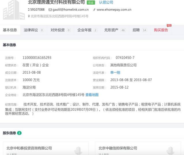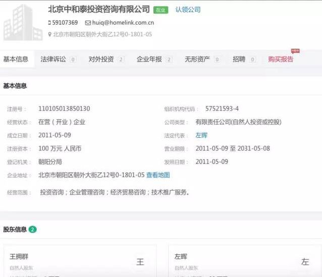 (相關(guān)工商資料信息來自企查查) 理房通注冊(cè)于2013年8月,法人為單一剛,身份是鏈家地產(chǎn)的執(zhí)行董事。理房通的股東為中融信擔(dān)保和北京中和泰投資咨詢有限公司兩家,而北京中和泰投資咨詢有限公司的股東除鏈家地產(chǎn)董事長左暉外,還有鏈家地產(chǎn)副總裁王擁群。