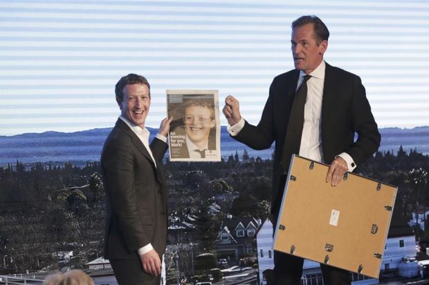![]() 【圖說:2月25日晚的“阿克塞爾·施普林格獎”頒獎儀式上沒有獎杯,獎狀或者獎金,但有一樣十分特殊的禮物。一份由柏林最大的報紙B.Z.和Business Insider聯(lián)合制作的印刷版報紙。在這份報紙上,小扎上了頭條。小扎很輕易上頭條,但是,印刷版報紙的真頭條,僅此一回! 十分期待在柏林,一個新媒體巨人,一個傳統(tǒng)媒體巨頭,能在以立異為標(biāo)識的“阿克塞爾·施普林格獎”頒獎儀式上擦出點火花來。傳媒業(yè)在全球范圍內(nèi),都身處“立異者的窘境”之中;ヂ(lián)網(wǎng)科技新貴與傳統(tǒng)媒體望族之間,可以泛起一些什么樣的化學(xué)反應(yīng),把新聞業(yè)做為一種事業(yè)一種工業(yè)帶到新的高度?
