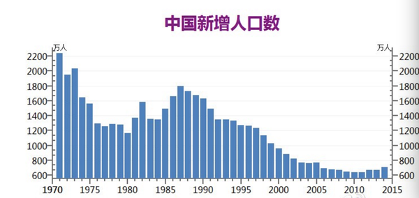 非常顯著,由正常的金字塔結(jié)構(gòu)變?yōu)殚L方形行結(jié)構(gòu),可見養(yǎng)老負(fù)擔(dān)過重。 而阿里多數(shù)是以小件物品、日常消費(fèi)為主,消費(fèi)者以當(dāng)下15——35歲區(qū)間,也就是80后人口居多,大家也認(rèn)識了網(wǎng)購。 而我國社會,正處于“供應(yīng)側(cè)改革階段”,由出產(chǎn)更多產(chǎn)品,知足人民日益上漲的物質(zhì)需求;轉(zhuǎn)變?yōu)椋撼霎a(chǎn)高質(zhì)量產(chǎn)品,知足人民群眾的精神需求。 買個產(chǎn)品,僅僅能用,這是不行的;85后年青一代,需要它酷;70后——85后,需要它健康。 這個需求是日益顯著的。 再看看看新增人口情況。