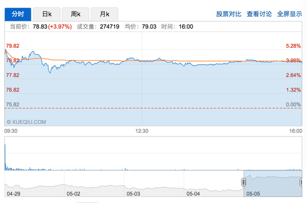一、 翻了一下資料,財(cái)報(bào)顯示,阿里2016年Q1營收為241.84億元,同比增長39%;好于分析師預(yù)期的232億元。 平臺成交額突破3萬億,達(dá)到3.092萬億元人民幣,同比增長27%;好于分析師預(yù)期。 除此之外,平臺的云計(jì)算、互聯(lián)網(wǎng)基建業(yè)務(wù),比較搶眼,收入大漲125%。 業(yè)績就是這樣的。 阿里的股價,開盤早起,漲幅達(dá)到5.12%,收盤時漲幅為3.97%。