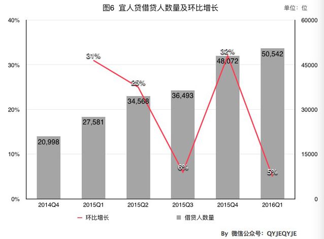 單借款人數(shù)變化情況,與看點一整體波動情況以及正常看點二波動情況相似。增速都是在2015Q3季度泛起相對低谷;跟著宜人貸上市,泛起短暫的反彈;而后跟著整體宏觀環(huán)境,達到歷史最低點。 當然,整體絕對值情況,仍舊是繼承不亂發(fā)展。