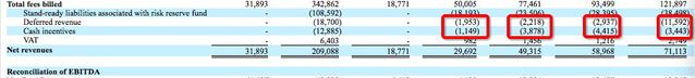 (注:總凈營收,是指總收費額扣除風險預備金、遞延收入以及高管的現(xiàn)金獎勵后的收入情況) 正常情況下,根據(jù)會計信息的配比原則(matching principle)和財務信息內在一致性邏輯原則,總凈營收應該與平臺貸款總額(理解成電商GMV)和總收費額(理解成毛收入)應該泛起同樣的拐點。 (注:配比原則通俗來說,就是有多大的場面,就應該有相匹配的收入和用度;內在一致性原則,就是說相關財務數(shù)據(jù),內在存在一定意義上的比例關系) 然而我們觀察到波動里泛起了一些失常情況,原本Q2應該凈營收繼承下降的,卻意外的上升。2016Q1季度凈營收,應該達到最低點,然而卻與2015Q4季度持平。其他情況,基本與看點一描述的類似。