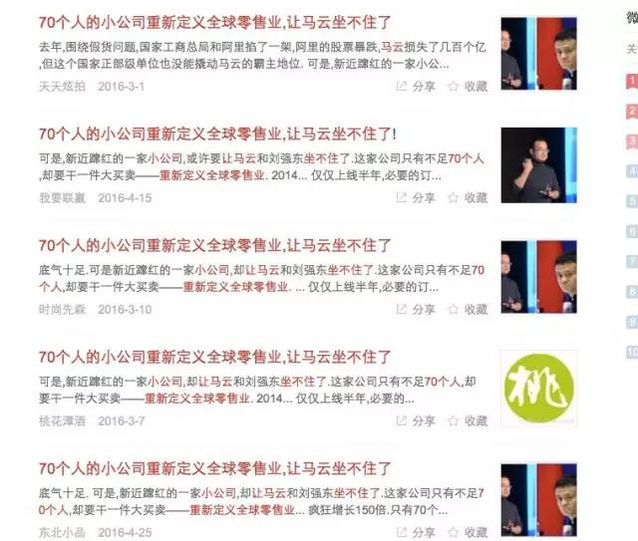 199就能買到 Burberry,200塊就能買到正品耐克……賣個(gè)高仿賣出這種驚天地泣鬼神的逼格,你真的合適嗎。 過去那些做高仿的,一般只敢寫:淘寶爆款,月銷千件…… 但畢勝和必要商城,不愧都是B字輩的,用一個(gè)C2M的高大上概念,把整個(gè)高仿微商都抬高了一個(gè)檔次! 看完必要商城的模式先容,我才明白:原來必要商城的貨源都是來自品牌老板小姨家的二大爺開的工廠,對方既不怕傷害品牌利益丟訂單,又不怕你訂單少還個(gè)性化需求多單拉出產(chǎn)線要虧本……反正就是:好貨低價(jià)專門只賣給你,又正品來又便宜……劉強(qiáng)東你要好好學(xué)習(xí)一下,京東一直干不外淘寶,原來就是沒有做C2M模式! 看脫稿件,覺得整個(gè)靈魂都得到了升華的倪叔,深深的覺得自己配不上這么牛逼的客戶,于是我問公關(guān)哥哥:您是否找錯(cuò)人啦?這像這種玄幻小說,不是應(yīng)該投放出發(fā)點(diǎn)中文網(wǎng)嗎?來找我們這些寫非虛構(gòu)的真的好嗎? 公關(guān)哥哥沒想到我會(huì)拒絕,愣了愣就罵出一句:哼!不識提拔,多少大號都投放了我們的文章,你一個(gè)小號來挑什么刺? 大號?。。∥覈樍艘惶,豈非是作為小號的我太low啦,已經(jīng)跟不上時(shí)代的步伐了嘛?我急忙打開了微信搜索,看到如下情況: