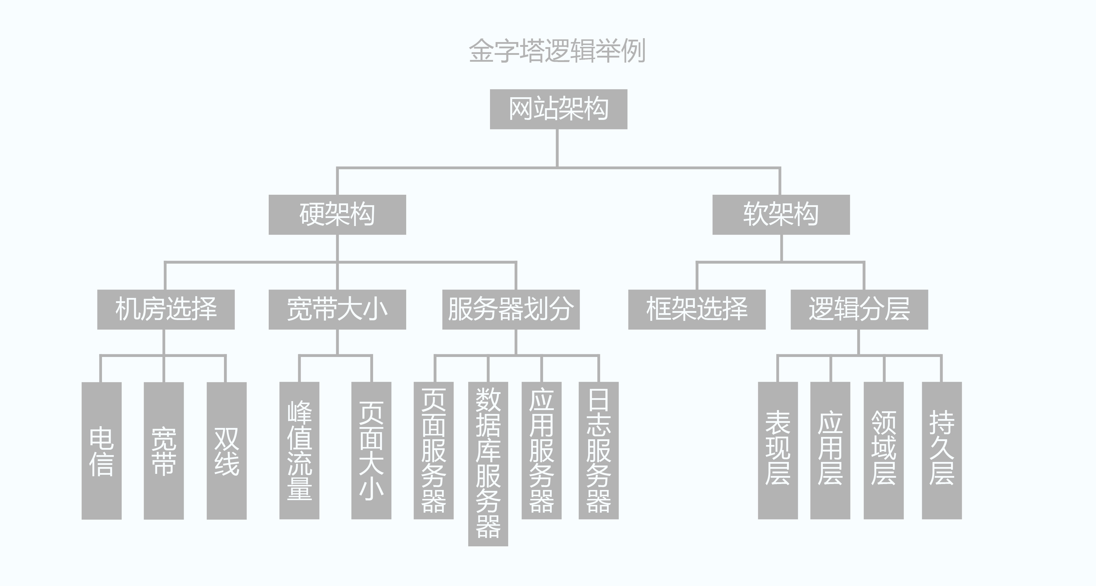 直線式邏輯思路明確,針對性強(qiáng),輕易看懂,我們引導(dǎo)用戶順著這個(gè)邏輯看設(shè)計(jì)也不會思路攪渾。 3.金字塔式邏輯 金字塔式邏輯,結(jié)構(gòu)中的各種分類以僅有的幾種邏輯方式互相聯(lián)系(向上、向下和橫向),構(gòu)成相互聯(lián)系緊密且通暢的邏輯思路。金字塔邏輯運(yùn)用廣泛,例如網(wǎng)站架構(gòu)