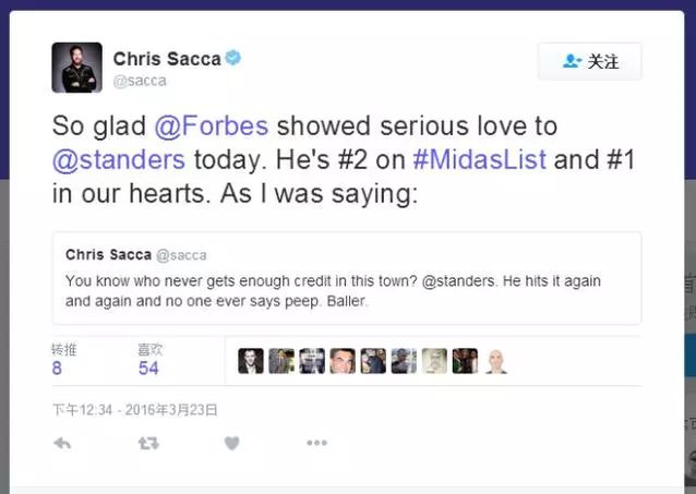 (福布斯宣布2016年最佳創(chuàng)投人排行榜的時(shí)候,Chris Sacca在twitter上對(duì)Steve Anderson表達(dá)了自己的敬(ai)意(yi) ,嘿嘿嘿) 牽線(xiàn)twitter和Anderson的是Baseline Ventures曾經(jīng)的合伙人Ron Conway。Conway是Anderson在凱鵬華盈時(shí)期的良師,他的到來(lái)不僅給Baseline Ventures引來(lái)了充足的資金,同時(shí)和twitter的合作也改變了Baseline Ventures的命運(yùn)(翻譯:就是因此賺了良多錢(qián)的意思)。 然而,Conway和Anderson的合作并沒(méi)有持續(xù)多久。當(dāng)時(shí)Conway十分看好社交媒體,想要一次性投資一堆羽翼未豐的社交媒體創(chuàng)業(yè)公司。而Anderson以往的做法是,只選擇他以為有價(jià)值的公司,然后砸錢(qián),一年投的項(xiàng)目,不會(huì)超過(guò)十個(gè)。 Conway由于無(wú)法忍受這種龜速的投資狀態(tài),終極離開(kāi)了Baseline。