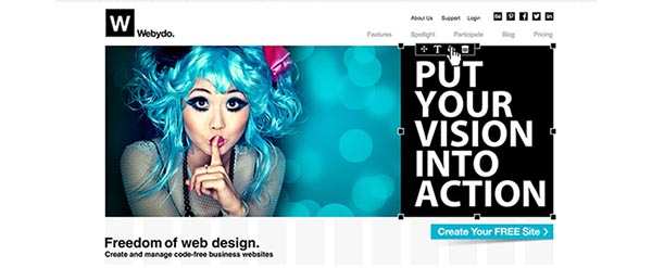你可能是設計界大佬,卻不擅長編程;或者你擅長編程分析思維,甚至足夠有創(chuàng)意……但不管你將自己裝備至多么完備,也幾乎無法在繁忙的創(chuàng)意工作中再抽出時間拓展客戶庫。這就是題目所在,不管是多么有本領的人,都有力所不能及的時候,這時候借助好的平臺和工具就顯得十分重要了。 懂得利用網站構建平臺、內容治理系統(tǒng)或WordPress插件能夠匡助你節(jié)省寶貴時間。 Webydo 我們首先先容這個以瀏覽器為主的網頁設計平臺,在專為網頁設計師和專業(yè)設計工作室服務的強盛平臺上構建網站、治理客戶網站,就能輕松得到優(yōu)秀網站。