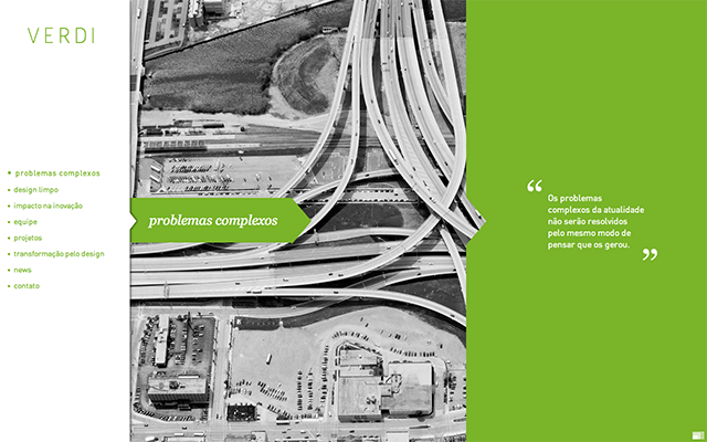 6.VERDI的網(wǎng)站頁面運用了色塊“拼接”的效果,從白到灰再到綠色。白色和灰色都是中性色,所以頁面中的綠色很天然的成了最搶眼的一部門,這樣的搭配方式也讓畫面更富有運動感。