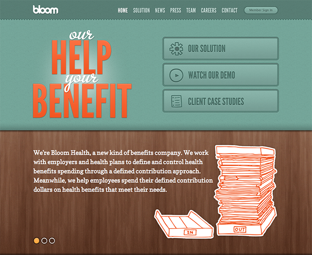 2.Sprout的網(wǎng)站沒有沒使用大片的綠色,只是在灰度較高的背景上加了一些綠色的裝飾來做點綴。但這些元素并不只是美觀而已,同時也在無形中指引著我們,反差顯著的綠色和黑灰色讓用戶能輕而易舉的分辨出信息重點。
