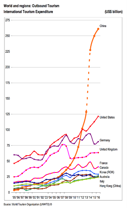 據(jù)統(tǒng)計(jì),2016年我國(guó)出境花費(fèi)到達(dá)2900億美元,居國(guó)際之首。我國(guó)以4%的護(hù)照持有率,變成全球出境花費(fèi)額最高的國(guó)家。在將來(lái)五到十年內(nèi),跟