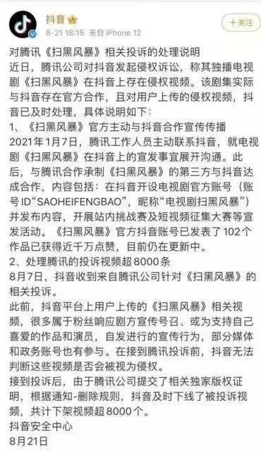 近騰訊與抖音就長、短視頻版權(quán)問題“握手言歡”,雙方宣布“將盤繞長短視頻聯(lián)動(dòng)推行、短視頻衍生創(chuàng)作展開協(xié)作!边@一舉措,惹起了社會的普遍關(guān)注與討論。被看做是“長短視頻之爭的一個(gè)“新拐點(diǎn)”。 很多網(wǎng)友慨嘆“早該如此”,