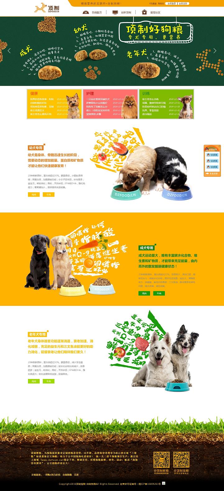 客戶案例:http: www dzfood cn 頂制鮮糧,為狗狗提供量身定制的精準(zhǔn)營養(yǎng),以年齡、品種和營養(yǎng)需求為核心的全新三維糧標(biāo)準(zhǔn)重新定義狗糧,
