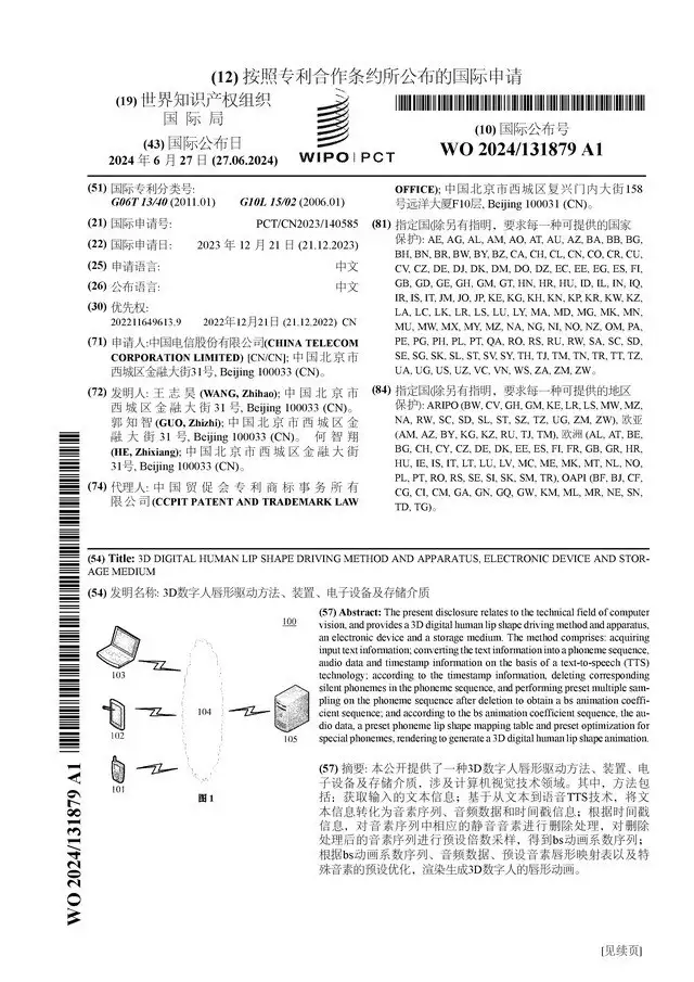 證券之星消息,根據(jù)企查查數(shù)據(jù)顯示,中國電信(601728)公布了一項(xiàng)國際專利申請(qǐng),專利名為“3D 數(shù)字人唇形驅(qū)動(dòng)方法、裝置、電子設(shè)備及存儲(chǔ)介質(zhì)”,