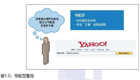 1.4.1 導(dǎo)航型查詢(xún) 導(dǎo)航型查詢(xún)的目的是直接閱讀某個(gè)特定的網(wǎng)站。在某些情況下,用戶(hù)可能不知道準(zhǔn)確的URL,查找引擎這時(shí)起到電話號(hào)碼簿的效果。