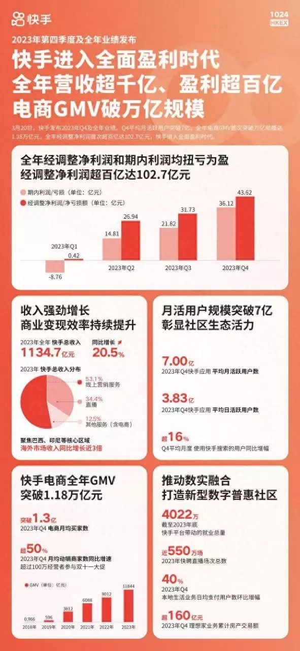 快手電商在2023年實(shí)現(xiàn)了全年GMV達(dá)到1.18萬億元的壯舉,這一數(shù)字背后是大眾市場增量的有力支撐。每月有1.3億用戶在快手上進(jìn)行購物,這龐大的用戶基數(shù)為快手電商的穩(wěn)健增長提供了堅(jiān)實(shí)的基礎(chǔ)。