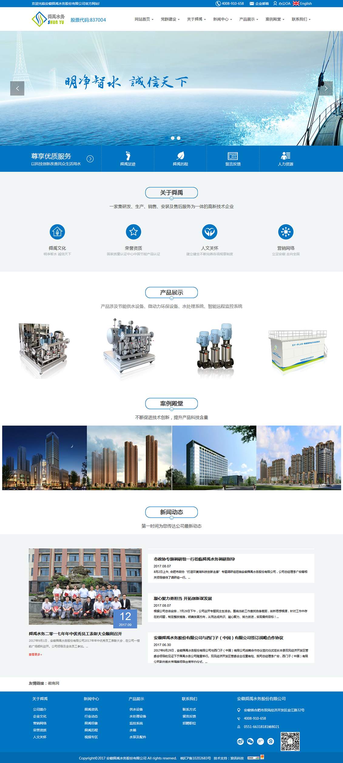 安徽舜禹水務(wù)股份有限公司成立于2011年,坐落于合肥市雙鳳經(jīng)濟開發(fā)區(qū)核心區(qū)域,總股本9521萬股,公司股票代碼為:837004,是國內(nèi)二次供水行業(yè)率先掛牌的企業(yè)。公司的主要產(chǎn)品涉及節(jié)能(智能)供水設(shè)備、智能模塊化環(huán)保設(shè)備、環(huán)保工程系統(tǒng)、智能遠(yuǎn)程監(jiān)控系統(tǒng)、智慧水務(wù)整體解決方案等,是一家集研發(fā)、生產(chǎn)、銷售、安裝及運維服務(wù)為一體的國家級高新技術(shù)企業(yè),填補了安徽省智能供水、智能模塊化污水處理、遠(yuǎn)程監(jiān)管系統(tǒng)領(lǐng)域的空白。