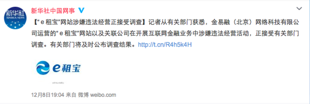 但就在昨天晚上,老大哥新華社發(fā)話了,證明“e租寶網(wǎng)站以及聯(lián)系關系公司在開展互聯(lián)網(wǎng)金融業(yè)務中涉嫌違法經(jīng)營流動,正接受有關部分調查。”