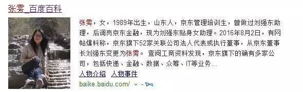 不得不說這妹子命運(yùn)運(yùn)限真好,2007年進(jìn)入中心財經(jīng)大學(xué)信息學(xué)院,2011年畢業(yè)后以管培生的身份進(jìn)入京東。隨后事業(yè)平步青云,2015年景為京東旗下津投保險公司的執(zhí)行董事。 好吧!這個89年妹子也不簡樸,在學(xué)生時代就是學(xué)霸,而且在做助理時,深受領(lǐng)導(dǎo)喜愛。(jù)說這大BOSS叫他“丫頭”。這個應(yīng)該是強(qiáng)東大BOSS把,究竟當(dāng)時張雱是劉強(qiáng)東的助理