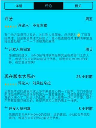 原先的鄰近的人呢?放最上面這么一個(gè)進(jìn)口,這么不注重?玩陌陌的,不都是找鄰近的人么,這么一改我得操作好幾步。新加的幾個(gè)功用,點(diǎn)點(diǎn)、快聊、狼人殺、派對(duì),除了狼人殺還有點(diǎn)用,別的功用誰會(huì)玩?一上來就視頻,為難不為難?并且,這不是我一自己的定見,你看appstore上成堆罵陌陌8.0改版的,一星評(píng)估數(shù)超越5星,評(píng)估前史最低,用力過猛了……