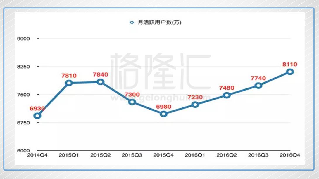 最后吧,作為一個(gè)資深玩家,許多直播軟件我都玩過,可是陌陌的打賞功用很是雞肋,有木有?我要是真喜愛哪個(gè)主播,用得著在直播間打賞,打賞了人家不必定看得見,我直接在她主頁下送禮物不就得了,這是經(jīng)驗(yàn)之談。 所以,我暫時(shí)會(huì)脫離陌陌,直到它真的值得玩。 ▌三、陌陌的劫癥:直播完了,還有啥? 確實(shí),陌陌這次大改版,頗具爭議?春玫娜苏f,這豐厚了陌生人交際的場(chǎng)景,不看好的人覺得陌陌過于急進(jìn),這次改版,透露出商品司理滿滿的無法:A干到頭了,加個(gè)B吧,或許能成,還不成?加個(gè)C吧,A+B+C必定可以的。 真的可以嗎?顯著不行,微信不是QQ上加個(gè)東西加出來的。但陌陌這么做,肯定是遇到疑問。 啥疑問呢? 1、用戶規(guī)劃天花板 在2017年榜首季度,陌陌月活潑用戶達(dá)8520萬,對(duì)比2016年3月的7230萬,同比增加17.84%,對(duì)比上一季度8110萬,環(huán)比增加5%。這種趨勢(shì)的連續(xù),上文也提到,2016開端的直播浪潮是立了大功的。