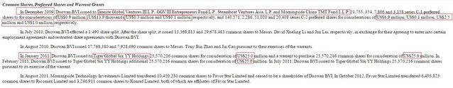 圖4:2011年8月,YY曾三次向老虎基金發(fā)售普通股共計7500萬美元。