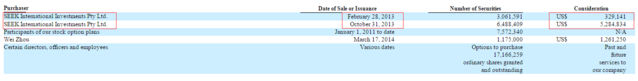 但招股書顯示在麥格理拋售后,大股東Seek并未跟投1.05億美元,只注資了約561萬美元,只是1.05億美元數(shù)據(jù)的零頭。實(shí)際情況是文字游戲:智聯(lián)自身出資1.05億向麥格理回購了股份并注銷,但卻被說成大股東看好而增加持股比例。因?yàn)榭偣煞菹陆担蠊蓶|Seek的持股比例天然上升,真正注入的現(xiàn)金僅561萬美元。 以下為招股書截圖: