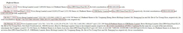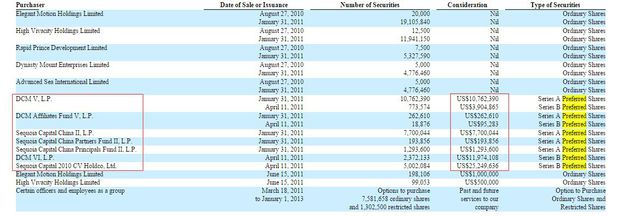 但翻出窩窩團(tuán)招股書中的History、Preferred Shares及Financing actvities三欄數(shù)據(jù),整個2011年窩窩團(tuán)共計融資為5500萬美元,約為報道2億融資額的1/4。 2011年4月,清科資本投了500萬美元。接下來5月和6月,鼎暉、清科分別跟投了3000萬、200萬美元。7月,Besto Holdings、天助等機(jī)構(gòu)共計注資1800萬美元。 招股書詳細(xì)信息如下: