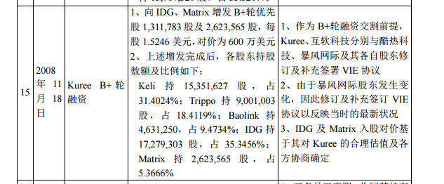 但狂風(fēng)科技招股書顯示,在2008年11月18日,向IDG、Matrix增發(fā)B+輪優(yōu)先股1,311,783股及2,623,565股,每股1.5246美元,對價為600萬美元,不足報道中1500萬融資額的一半。