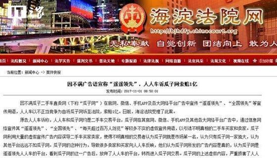 二手車商場最近工作不少。除了幾家都別離融資人人車趁著雙十一之前把瓜子二手車告上了法庭,索賠1個億。申述理由是不正當(dāng)競賽。