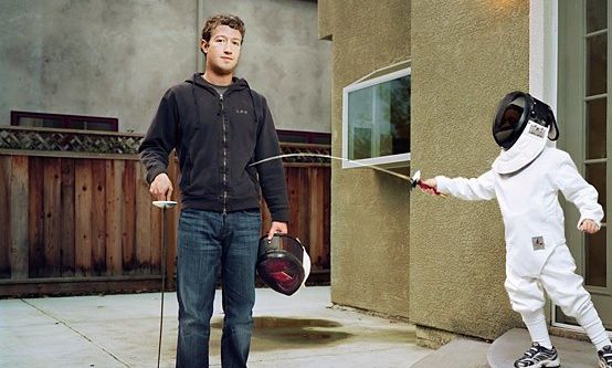 圖注:Facebook創(chuàng)始人扎克伯格酷愛擊劍運(yùn)動(dòng),喜歡把貿(mào)易競(jìng)爭(zhēng)看做是競(jìng)技場(chǎng)上的搏殺在谷歌大樓的一間會(huì)議室里,放著一幅巨大手繪壁畫。該畫描
