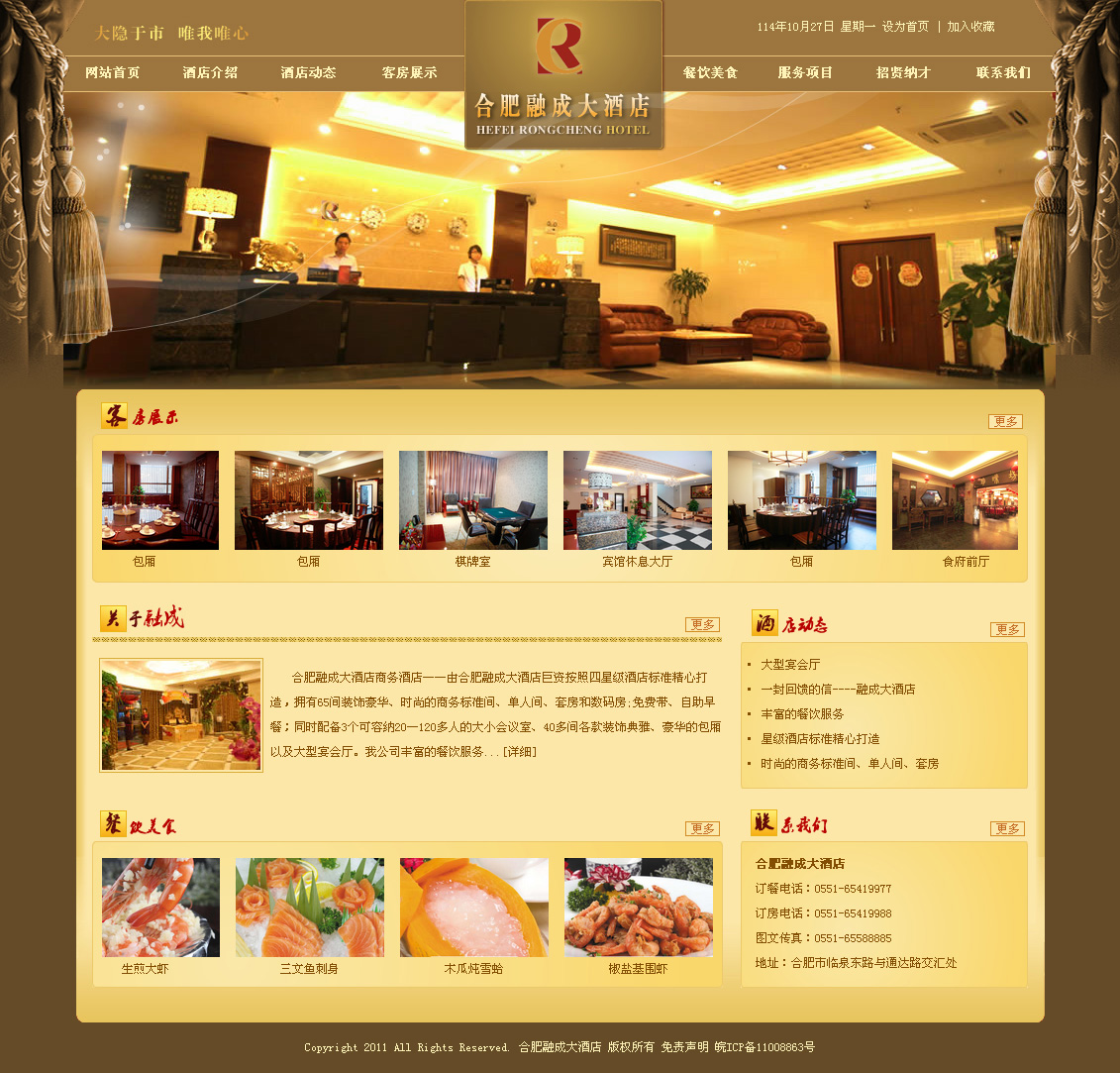 合肥融成大酒店商務(wù)酒店——由合肥融成大酒店巨資按照四星級酒店標準精心打造,擁有65間裝飾豪華、時尚的商務(wù)標準間、單人間、套房和數(shù)碼房;免費帶、自助早餐;同時配備3個可容納20—120多人的大小會議室、40多間各款裝飾典雅、豪華的包廂以及大型宴會廳。