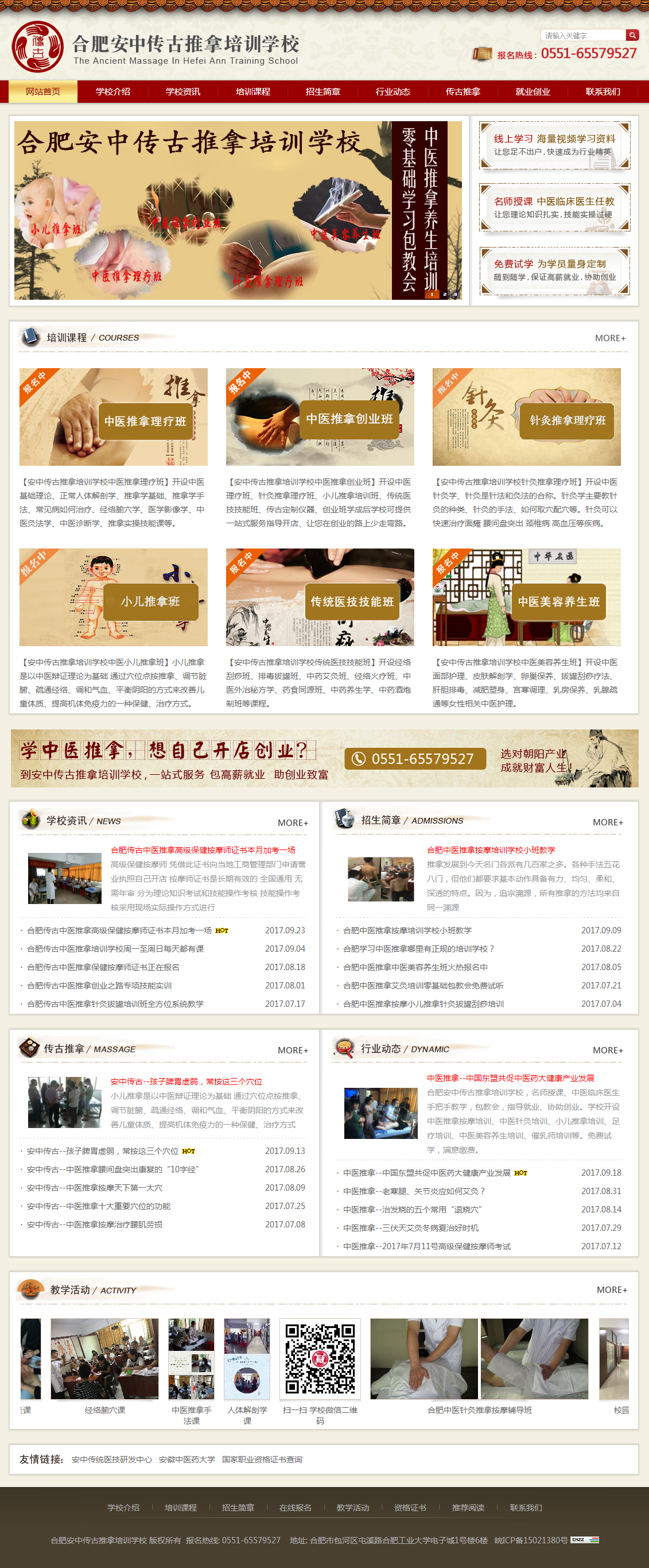 合肥安中傳古推拿培訓(xùn)學(xué)校以中醫(yī)推拿按摩培訓(xùn)為特色,專(zhuān)注于傳統(tǒng)醫(yī)技的研發(fā)推廣,傳統(tǒng)醫(yī)學(xué)技術(shù)(中醫(yī)推拿、艾灸、刮痧、拔罐、火療、刺血、針灸、穴位埋線、養(yǎng)生藥酒、藥食同源等)的推廣培訓(xùn),成人繼續(xù)教育考培輔導(dǎo),健康產(chǎn)品及服務(wù)的研究開(kāi)發(fā)等。學(xué)校自成立以來(lái),培養(yǎng)了一大批具有現(xiàn)代化養(yǎng)生知識(shí)和理念的專(zhuān)業(yè)人才,提高了保健養(yǎng)生人員的學(xué)歷層次,自主研發(fā)的“保健養(yǎng)生酒”系列、“藥食同源”保健食品系列深受廣大學(xué)員和市場(chǎng)的喜愛(ài)。