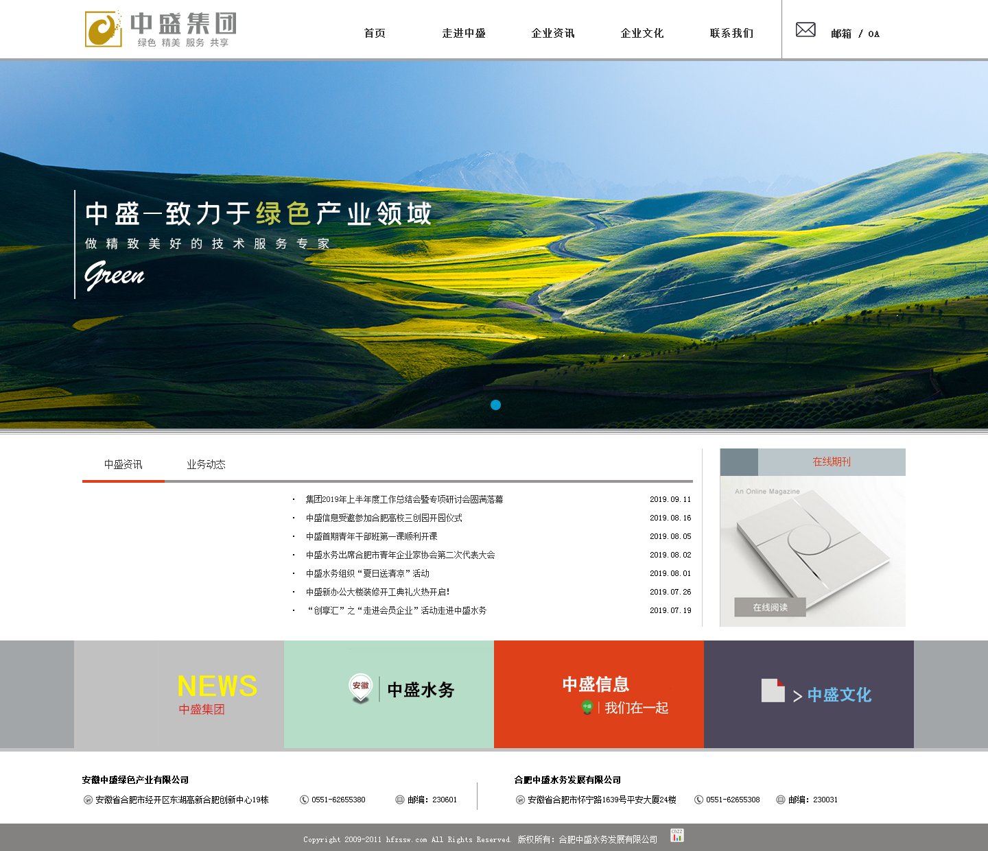 中盛集團(tuán)是一家以綠色、環(huán)保、健康為產(chǎn)業(yè)方向的集團(tuán)公司,業(yè)務(wù)范圍涉及水務(wù)環(huán)保、智能信息化、文化教育、醫(yī)療健康等產(chǎn)業(yè)。集團(tuán)下屬子公司包括合肥中盛水務(wù)發(fā)展有限公司、合肥中盛信息技術(shù)有限公司、安徽中盛文化產(chǎn)業(yè)有限公司等。 合肥中盛水務(wù)發(fā)展有限公司成立于2009年,是一家集“水務(wù)投資、技術(shù)研發(fā)、工藝集成、環(huán)境工程總包”為一體的水務(wù)治理方案供應(yīng)商,業(yè)務(wù)范圍涉及市政污水、工業(yè)廢水、流域綜合治理及污泥處置領(lǐng)域。
